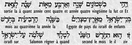 L'hébreu, comme la plupart des langues sémitiques, n'était écrit qu'avec des consonnes, son alphabet en contenait vingt-deux, mais environ neuf d'entre elles pouvaient représenter chacune deux sons. La gamme de sons s'étendait à environ vingt-huit sons de consonnes. Mais si la langue écrite n'avait pas de voyelles, elle avait de nombreux sons de voyelles dans sa forme orale, dépassant en cela de beaucoup la langue française. La difficulté est que dans l'idiome écrit ne figurait aucune voyelle et que les lecteurs devaient ajouter, de mémoire, les sons de voyelles de la langue parlée, comme les lecteurs français doivent suppléer par des voyelles adéquates à ce qui manque à certaines abréviations telles que fbg. (faubourg), ngt. (négociant), etc. (et caetera).